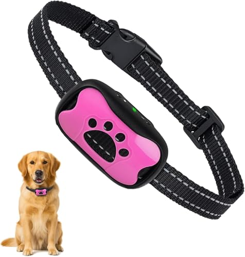 Collier Anti Aboiement Chiens,Modes Son/Vibration/Vibration Forte, Détection Intelligente des Aboiements, Rechargeable, Étanche IP67, pour Petit et Gros Chien (Rose)