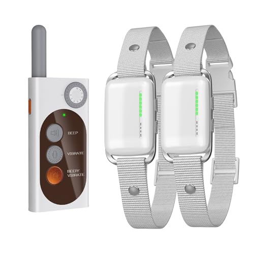 Collier Anti Aboiement Chiens, Lot de 2, Collier Vibration, Modes Son/Vibration/Vibration Forte, Détection Intelligente des Aboiements, Rechargeable, Étanche IP67, pour Gros et Petit Chien