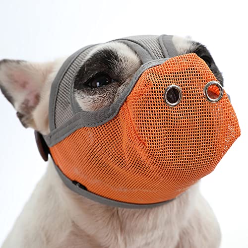 ACSUZ Muselière réglable et respirante pour chien - Anti-aboiement - Pour bouledogue français - Collier de dressage pour chien - Empêche les aboiements - Gris orange - Taille S