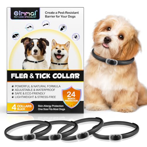 Collier Anti puces pour Chien, Colliers de Puces pour Chiens Naturels (4pcs), Protection de 24 Mois, Collier Aux Puces Réglables et Imperméables pour Les Petits, Moyens et Grands Chiens