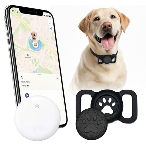 SWHC Chien Tracker, Collier GPS Animaux Tracker, Aide à Localiser Votre Chien, pour Taille Moyenne et Lourde, pour Apple Find (Compatible avec iOS/Android), Collier GPS Chat, Noir