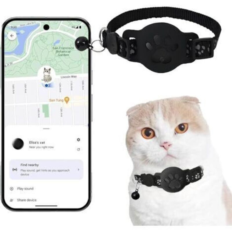 Collier GPS Chat, Traceur GPS Chat Tracker, Compatible avec Goo- gle Find My (Android Uniquement), sans Carte SIM Abonnement Mensuel, Localisation Temps Réel, Imperméable et Durable (Noir)