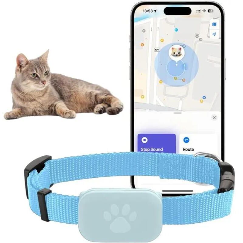 Générique Collier GPS Chat,Collier Traceur GPS pour Chat et Chien,Localisation en Temps Réel sans Abonnement,Compatible iOS/Android,Étanche IP67,Batterie Longue Durée CR2032 (Bleu, Petite Taille)