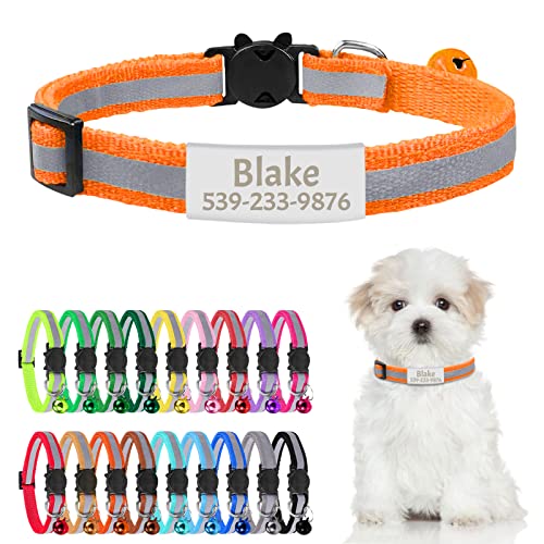 Uiopa Collier Chat Personnalisable avec Nom, Orange Collier Chat Anti Étranglement Reflechissant, Réglable Collier Chaton avec Clochette et Étiquette D'identification