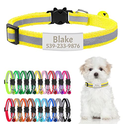 Uiopa Collier Chat Personnalisable avec Nom, Jaune Collier Chat Anti Étranglement Reflechissant, Réglable Collier Chaton avec Clochette et Étiquette D'identification