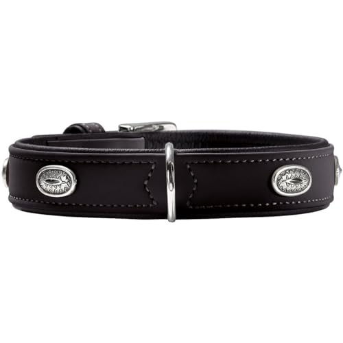 HUNTER Aalborg Style Collier pour Chien, Noir, Cuir de Vachette Pleine Fleur Fortement Graissé, Robuste et Confortable, avec Rivets Élégants, Fabriqué en Allemagne, Taille 32