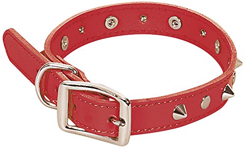 CHAPUIS SELLERIE Collier pour Chien Simili Cuir avec Clous Rouge Largeur 15 mm, Longueur 35 cm, Taille S