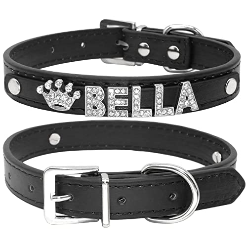 Collier pour chien personnalisé en cuir synthétique avec lettres à paillettes interchangeables et nom en strass, collier personnalisé avec 4 pour chiens de petite, moyenne et grande taille