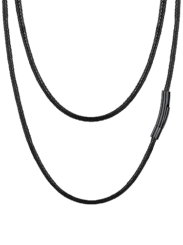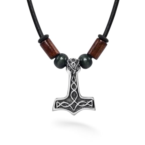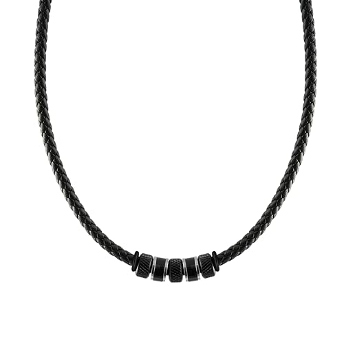 DonDon Collier en Cuir pour Homme 50 cm avec Pendentif Acier Inoxydable Dragon Dent avec Boule Noire