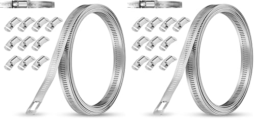 VINATO Collier de Serrage Inox 5m Bande Perforée en Métal + 10 Pièces Fixation, Collier Serrage Inox pour Tuyaux, Jardin, Automobile, Industrie (Lot de 2)