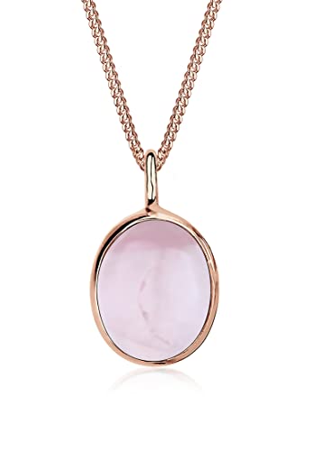 Elli Collier Femme Pendentif Ovale Quartz Rose - (925/1000) Argent