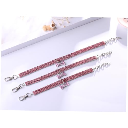 TOGEVAL Collier pour Chien et Chat Élastique à Rangées de Cristaux avec Pendentif Os Collier Décoratif Rose Accessoire Mode pour Animaux de Compagnie