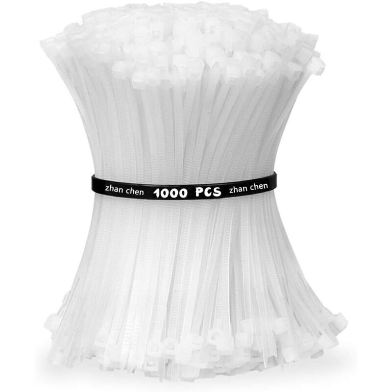 MEVRONISSHOP-Collier Rilsan Zip Ties 100mm x 3mm Attaches Câble Résistant aux UV et à la Chaleur Blanche Lot de 1000 Pièces