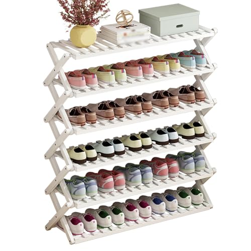 Étagère à chaussures, 2 niveaux et 6 niveaux, extensible, design colonne en forme de X, rangement de chaussures pliable portable pour couloirs et chambres à coucher
