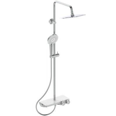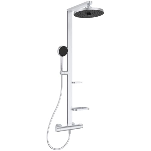 Ideal Standard Colonne de douche avec Mitigeur Thermostatique Ceratherm T50, Tablette de rangement intégrée, Ajustable en hauteur, Douchette ronde 3 Jets A7230AA