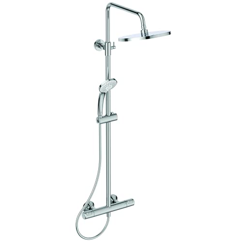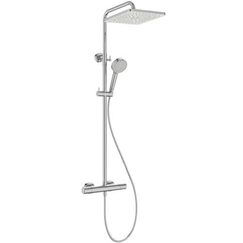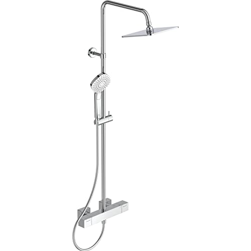 Ideal Standard Ceratherm T25 N Colonne de douche, Pommeau de douche à économie d'eau avec jets variables, pommeau carré, protection anti-brûlure, hauteur réglable – Chrome