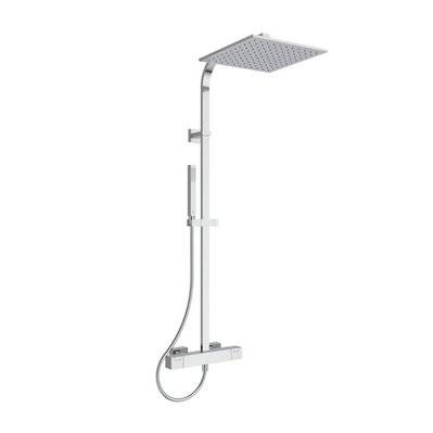 Ideal Standard Colonne Bain-Douche, Mitigeur thermostatique Ceratherm T100, Réglable Hauteur et Profondeur, Pomme de tête Rectangulaire 20 x 30 cm, Douchette 12,5 cm, 3 Jets, Flexible douche, A7591AA