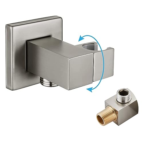 gotonovo Coude d'alimentation murale en nickel brossé en laiton massif à angle pivotant simple avec support de douche coudé avec connecteur de tuyau de douche par prise d'eau IPS mâle 1,27 cm