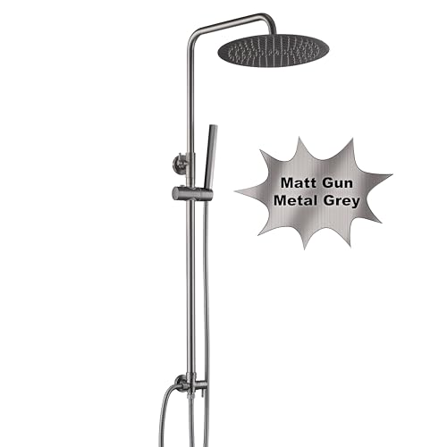 Görbach Colonne de Douche en Acier inoxydable sans Robinetterie, Barre de Douche Réglable en Hauteur pour Salle de Bain, Ensemble Douche avec Douchette et Pommeau de Pluie D25cm Gris gunmetal brossé