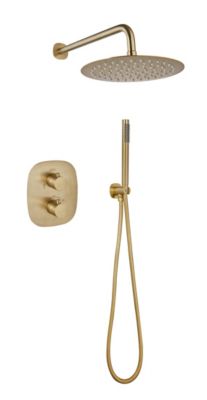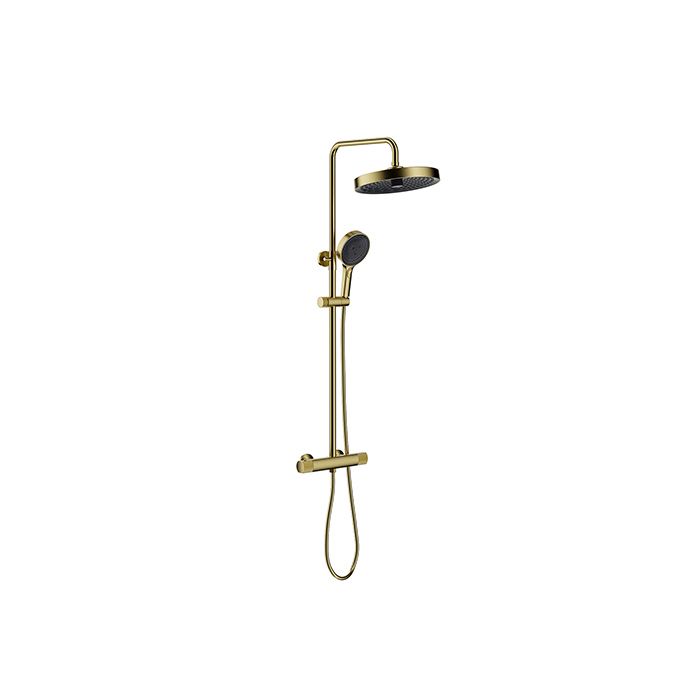 Colonne de douche thermostatique avec pommeau + douchette 2 jets + flexible + barre réglable, doré brossé, Galedo Arty