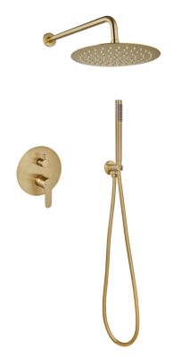 RONMX Colonne de Douche Encastrée, RSS0390 Doré Brossé Ensemble de Douche, 10in/12in Systèmes de Douche, Pomme de Douche Carré en Acier Inoxydable 304, Douchette à Main Cuivre, Corps en Laiton