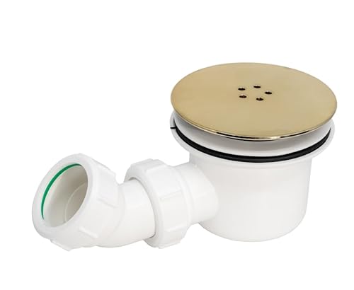 Fluidmaster Siphon de douche à haut débit 90 mm – Laiton brossé et blanc – Drainage rapide et design élégant