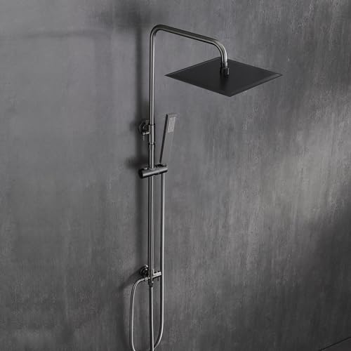 Görbach Colonne de Douche en Acier inoxydable sans Robinetterie, Barre de Douche Réglable en Hauteur, Ensemble Douche avec Douchette et Pommeau de Pluie 25 x 25cm Gris gunmetal brossé