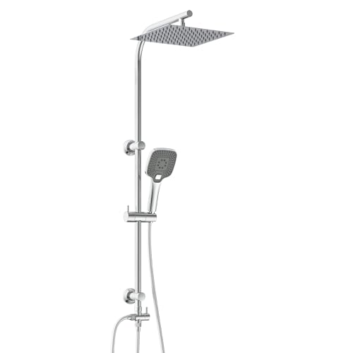 JOHO Colonne Douche sans Robinetterie Ensemble de Douche pour Baignoire Colonne de Douche Réglable en Acier Inoxy 304 Système de Douche Salle de Bain avec Douchette Pommeau Douche Carrée 25x25.