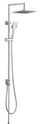 Colonne de douche sans robinetterie avec pommeau + douchette 2 jets + flexible + barre réglable, chrome, Edouard Rousseau Spatial