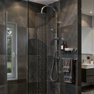 Colonne de douche sans robinetterie avec pommeau + douchette 3 jets + flexible + barre réglable chrome GoodHome Cavally