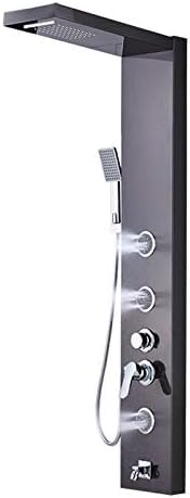 Colonne de douche murale en acier inoxydable avec éclairage LED 5 modes de douche (jets en cascade de pluie et bec de baignoire portatif) finition noire.