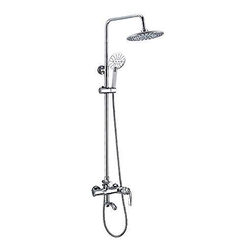 HIBA Colonne de Douche avec Mitigeur Hauteur Réglable Argent Mitigeur Baignoire avec Tête de Douche et Pommeau à main