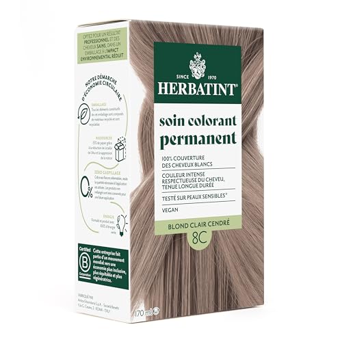 Herbatint Soin Colorant Permanent Cheveux 8C Blond Clair Cendré - 170 ml | Sans Ammoniaque, 100% Couverture Cheveux Blancs | Testé Dermatologiquement pour Peaux Sensibles, avec 8 Extraits Végétaux Bio