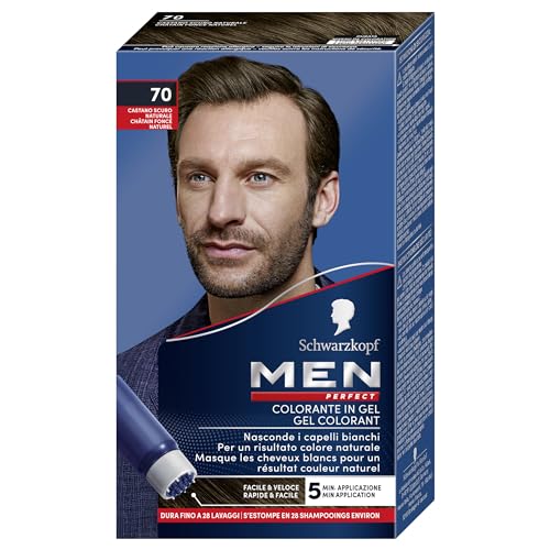 Men Perfect - Schwarzkopf - Gel Colorant Anti-Cheveux Blancs Homme - Coloration Cheveux Homme - Résultat Naturel – Application rapide et facile - Sans Ammoniaque -Châtain Foncé Naturel 70