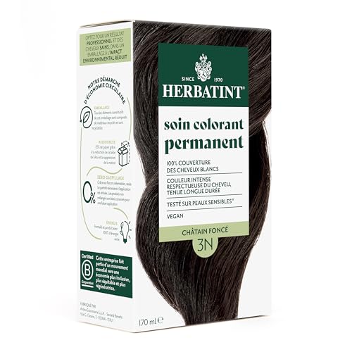 Herbatint Soin Colorant Permanent Cheveux 3N Châtain Foncé - 170 ml | Sans Ammoniaque, 100% Couverture des Cheveux Blancs | Testé Dermatologiquement pour Peaux Sensibles, avec 8 Extraits Végétaux Bio