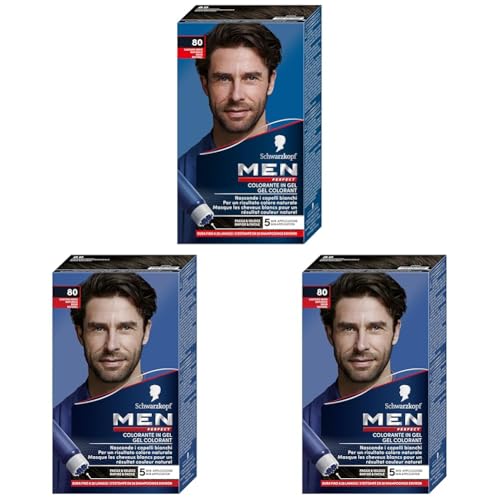 Men Perfect - Schwarzkopf - Gel Colorant Anti-Cheveux Blancs Homme - Coloration Cheveux Homme - Résultat Naturel – Application rapide et facile - Sans Ammoniaque - Brun Naturel 80 (Lot de 3)