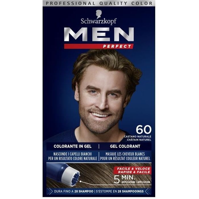 Schwarzkopf - Men Perfect - Gel Colorant Anti-Cheveux Blancs Homme - Résultat Naturel – Application rapide et facile - Sans Ammoniaque -Châtain Naturel 60 (Lot de 2)