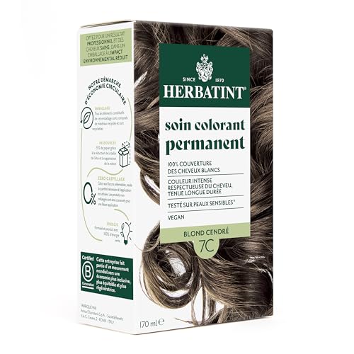 Herbatint Soin Colorant Permanent Cheveux 7C Blond Cendré - 170 ml | Sans Ammoniaque, 100% de Couverture des Cheveux Blancs| Testé Dermatologiquement pour Peaux Sensibles, avec 8 Extraits Végétaux Bio