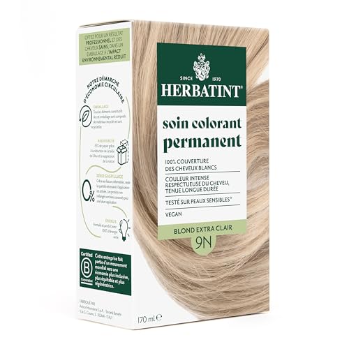 Herbatint Soin Colorant Permanent Cheveux 9N Blond Extra Clair - 170 ml | Sans Ammoniaque, 100% Couverture des Cheveux Blancs | Testé Dermatologiquement pour Peaux Sensibles, 8 Extraits Végétaux Bio