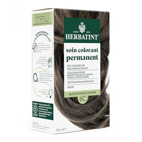 Herbatint Soin Colorant Permanent Cheveux 6C Blond Foncé Cendré - 170 ml | Sans Ammoniaque, 100% Couverture Cheveux Blancs | Testé Dermatologiquement pour Peaux Sensibles, avec 8 Extraits Végétaux Bio