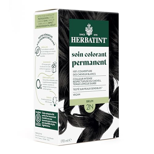Herbatint Soin Colorant Permanent pour Cheveux 2N Brun - 170 ml | Sans Ammoniaque, 100% de Couverture des Cheveux Blancs | Testé Dermatologiquement pour Peaux Sensibles, avec 8 Extraits Végétaux Bio