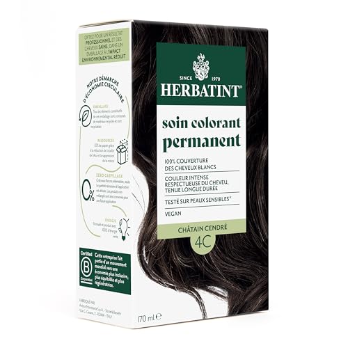 Herbatint Soin Colorant Permanent Cheveux 4C Châtain Cendré - 170 ml | Sans Ammoniaque, 100% Couverture des Cheveux Blancs | Testé Dermatologiquement pour Peaux Sensibles, avec 8 Extraits Végétaux Bio
