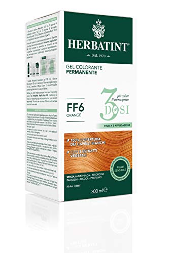 Herbatint Gel colorant permanent 3doses, 300 ml - FF6 orange, sans ammoniaque, pour peaux sensibles, 100% couverture cheveux blancs, avec 8 extraits naturels bio