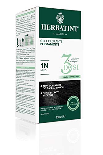 Herbatint Gel colorant permanent 3doses, 300 ml - 1 N noir, sans ammoniaque, pour peaux sensibles, 100% couverture cheveux blancs, avec 8 extraits naturels bio