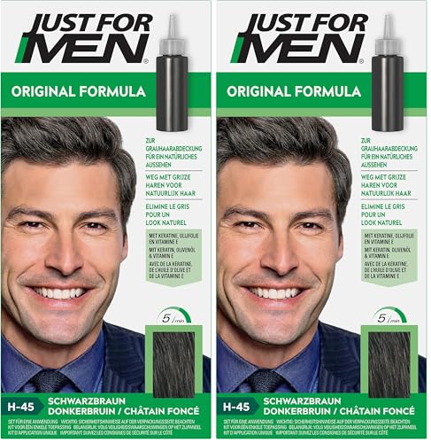 Just For Men Gel Colorant, Teinture Cheveux Noir, Coloration Cheveux Homme, Couvre Les Cheveux Blancs Et Restaure La Couleur D'Origine Pour Un Résultat Naturel, Rapide Et Facile, H55 (Lot de 2)