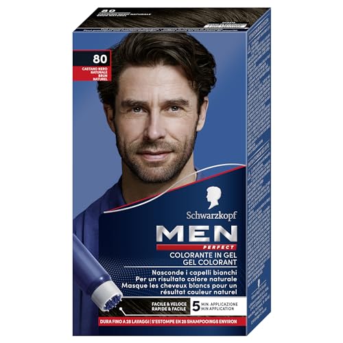 Men Perfect - Schwarzkopf - Gel Colorant Anti-Cheveux Blancs Homme - Coloration Cheveux Homme - Résultat Naturel – Application rapide et facile - Sans Ammoniaque - Brun Naturel 80