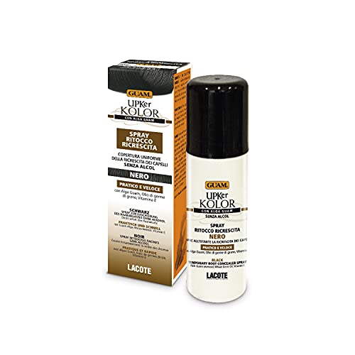 Guam Upker Kolor Retouche Racine et Cheveux Blancs qui Nourrit et Protège les Cheveux - Spray Colorant Cheveux - Bombe Cheveux Blanc aux Algues Guam avec Couverture Uniforme - Noir - 75 ml