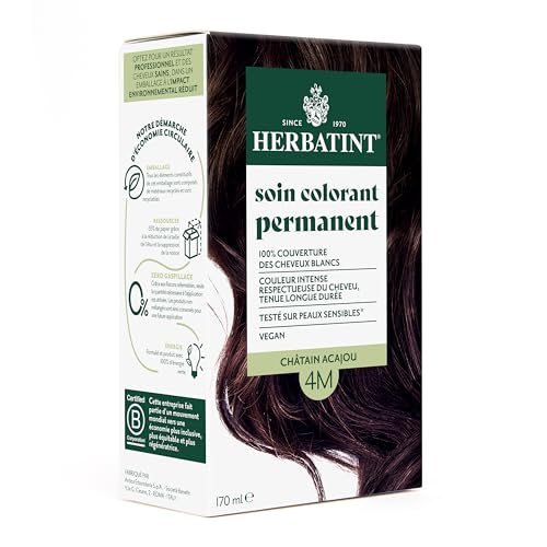 Herbatint Soin Colorant Permanent Cheveux 4M Châtain Acajou - 170 ml | Sans Ammoniaque, 100% Couverture Cheveux Blancs | Testé Dermatologiquement pour Peaux Sensibles, avec 8 Extraits Végétaux Bio