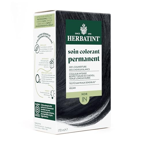 Herbatint Soin Colorant Permanent pour Cheveux 1N Noir - 170 ml | Sans Ammoniaque, 100% de Couverture des Cheveux Blancs | Testé Dermatologiquement pour Peaux Sensibles, avec 8 Extraits Végétaux Bio
