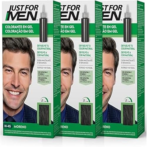 Just For Men Colorant en gel pour cheveux pour homme, ne couvre que les cheveux blancs, restaurant la couleur originale pour un aspect naturel, couleur marron foncé, H45 (lot de 3)